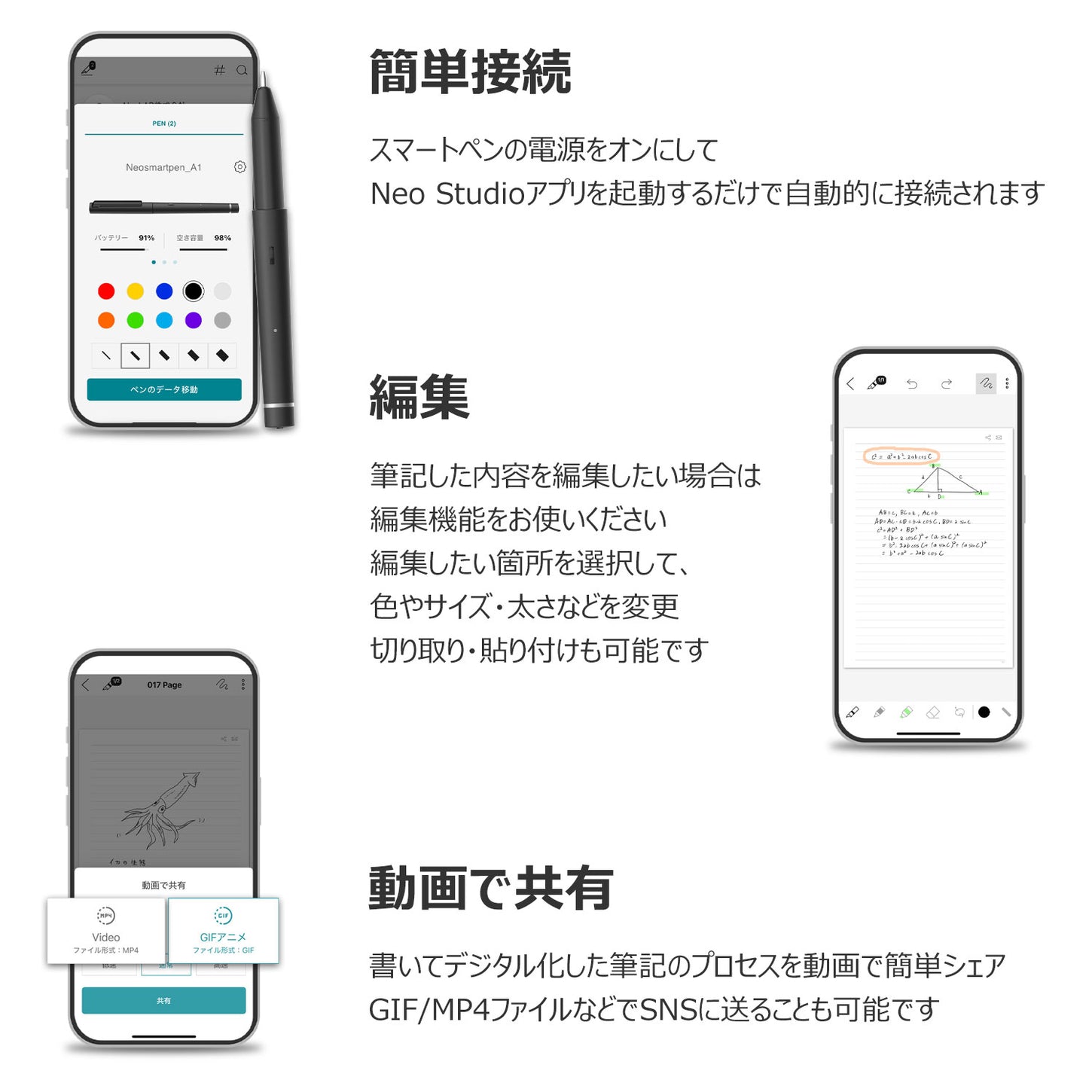 筆記をデジタルで保存し、編集・共有ができるNeo smartpen(LAMY safari スマートペン)の基本アプリ