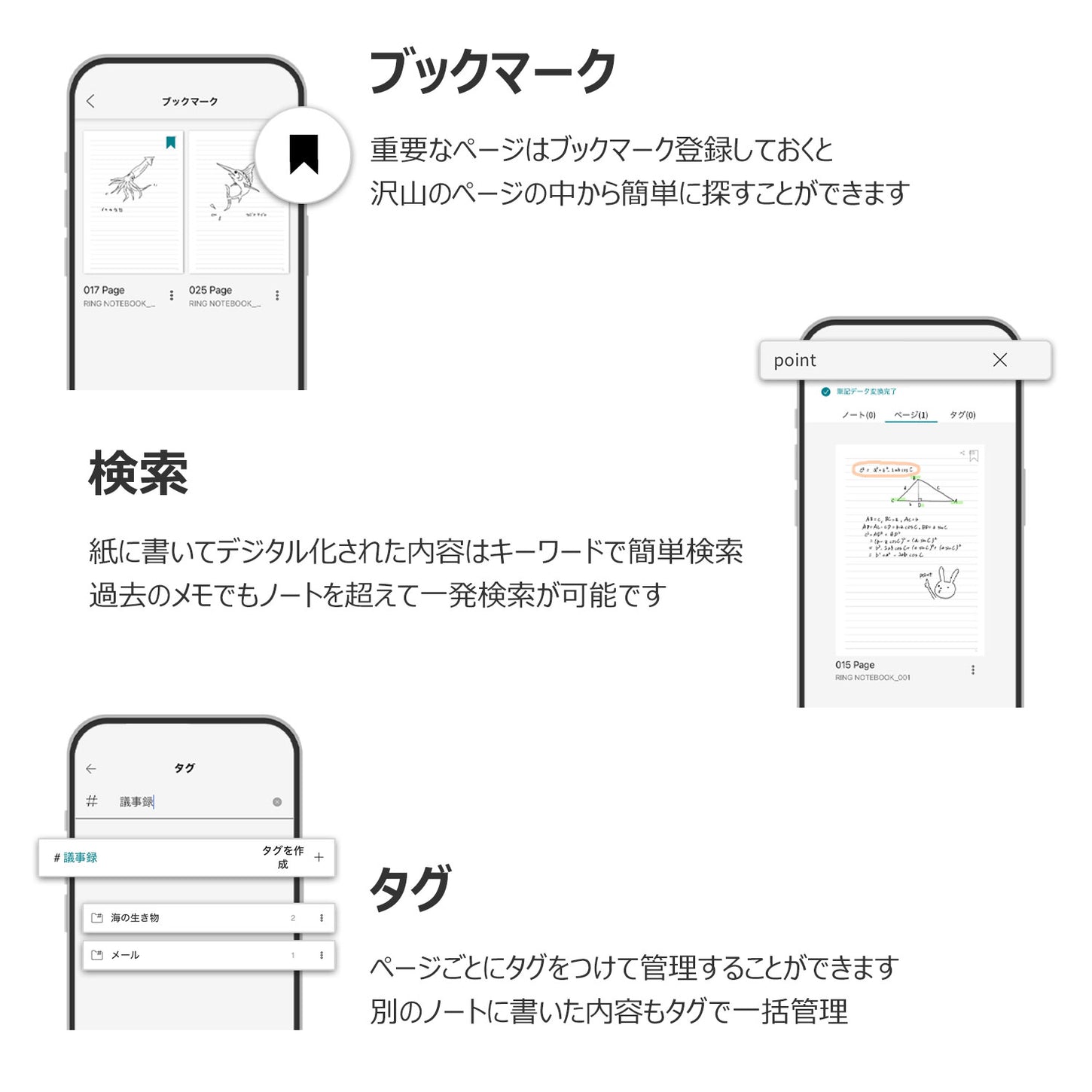 アナログなペンとノートではできなかった筆記の検索。タグやお気に入りから手書きのメモをパッと検索